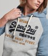Det här plagget hämtar inspiration från klassisk amerikansk estetik och allt som ingår i den när det gäller klassiska, bekväma sweatshirtkläder. Den här huvtröjan med raglanärmar erbjuder alla bekvämligheter du behöver tillsammans med vårt välkända Superdrymärke i en nostalgisk, broderad stil. Det är ett bra val när du behöver lägga till ett lager.