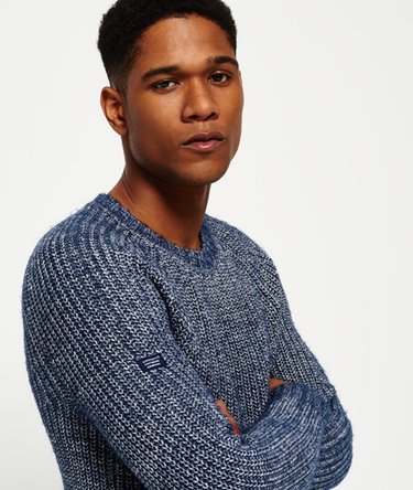 Superdry Gotland rundhalsad tröja för killar. Den här ribbstickade tröjan är ett oumbärligt plagg i vintergarderoben och passar perfekt tillsammans med ett par Corporal Slim jeans. Tröjan har en ribbad, rund hals, ribbade muddar och fåll och dessutom ett märke med Superdry-loggan ovanför fållen.