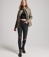Den här jackan har en speciell förstärkningsteknik, dragkedja och tryckknappar fram, sex fickor samt en dragsnodd i midjan.