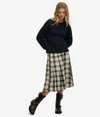 Den plisserade designen är en klassiker som ger en nostalgisk stil till centrum av ditt autentiska mode. Den rutiga plisserade midikjolen har skapats med mångsidighet och stil i åtanke för att erbjuda oändliga möjligheter att fullända din lediga look för säsongen. Med knappförslutning för att säkerställa en säker passform och spännedetaljer, kommer detta basplagg definitivt att tillföra elegans till din vardagliga stil.
